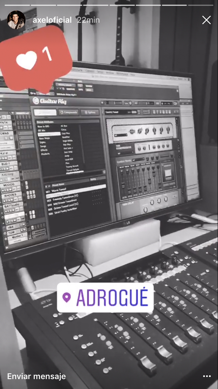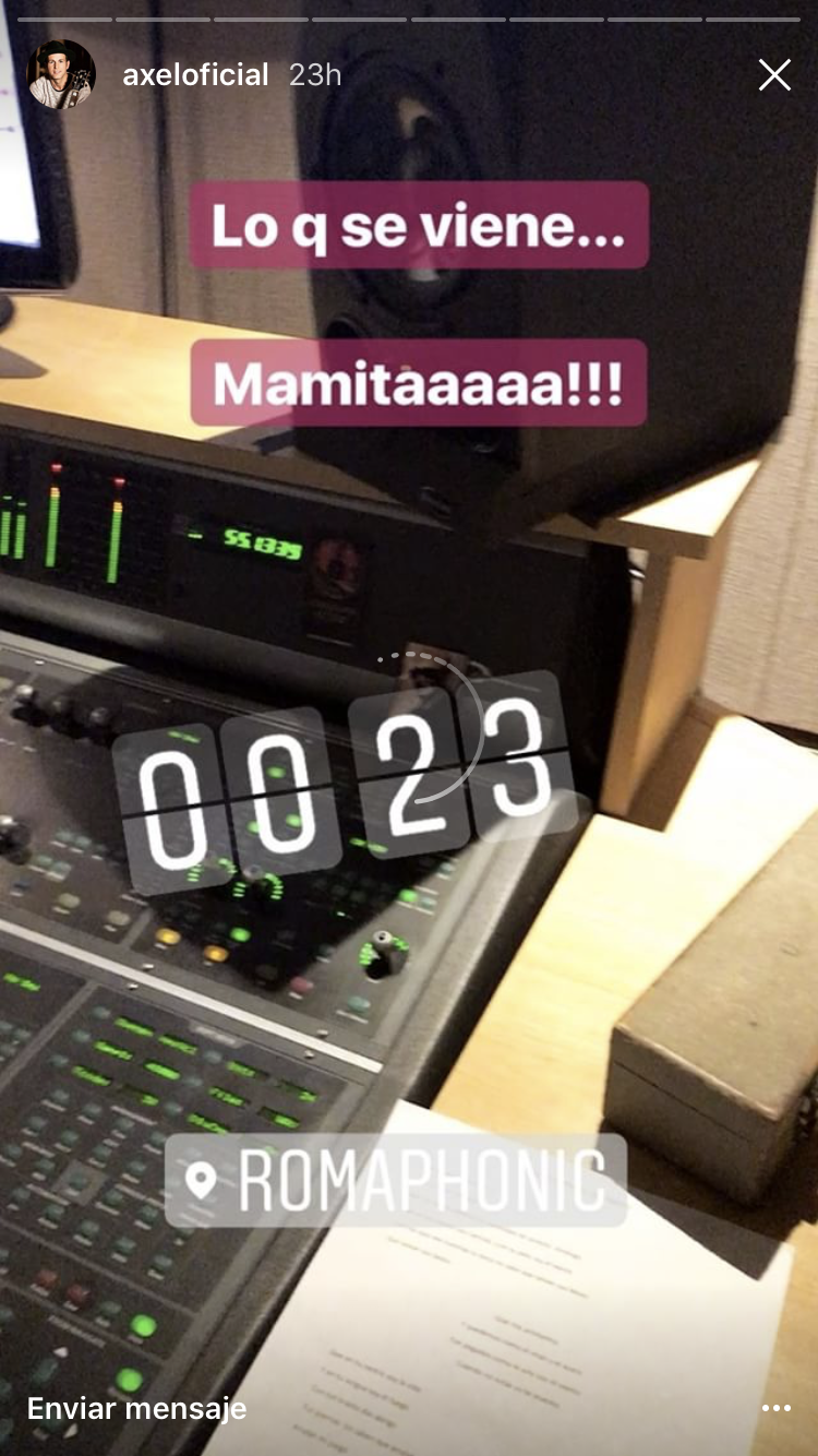 Ayer, el músico volvió a llamar la atención de sus seguidores con la Historia que compartió en su cuenta oficial. Al parecer, Axel estuvo hasta muy tarde en los estudios Romaphonic, ultimando detalles de su esperado disco. Pero hoy no se tomó el día. El cantante sigue compartiendo imágenes que revelan toda la intimidad de su trabajo en el álbum.