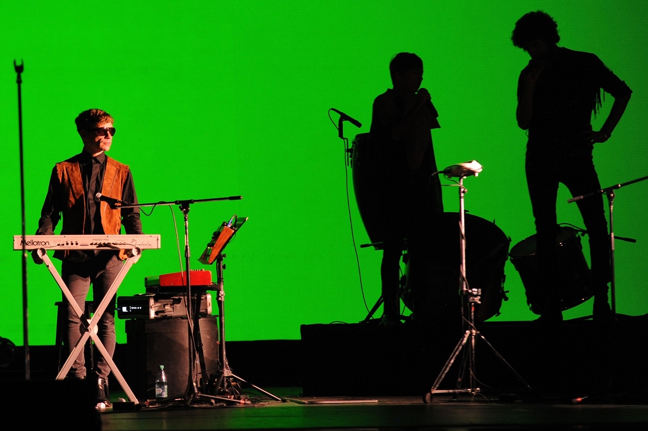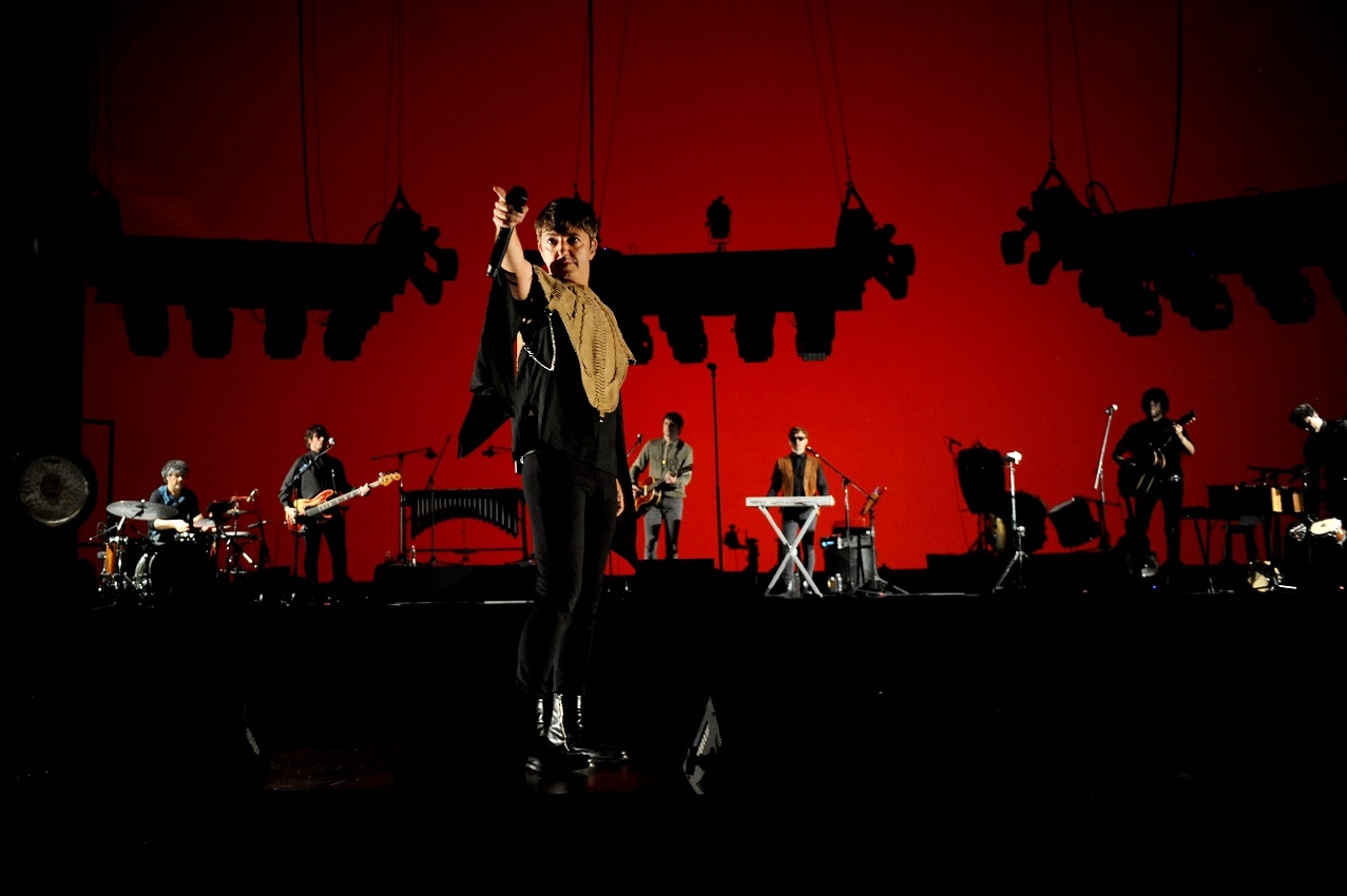 La banda de Adrián Dárgelos, que varias veces a lo largo de la noche bajó del escenario para seguir cantando entre los espectadores, combinó con la mística del teatro algunos instrumentos como mellotrón, teremin, vibráfono, marumbas y guitarras acústicas.