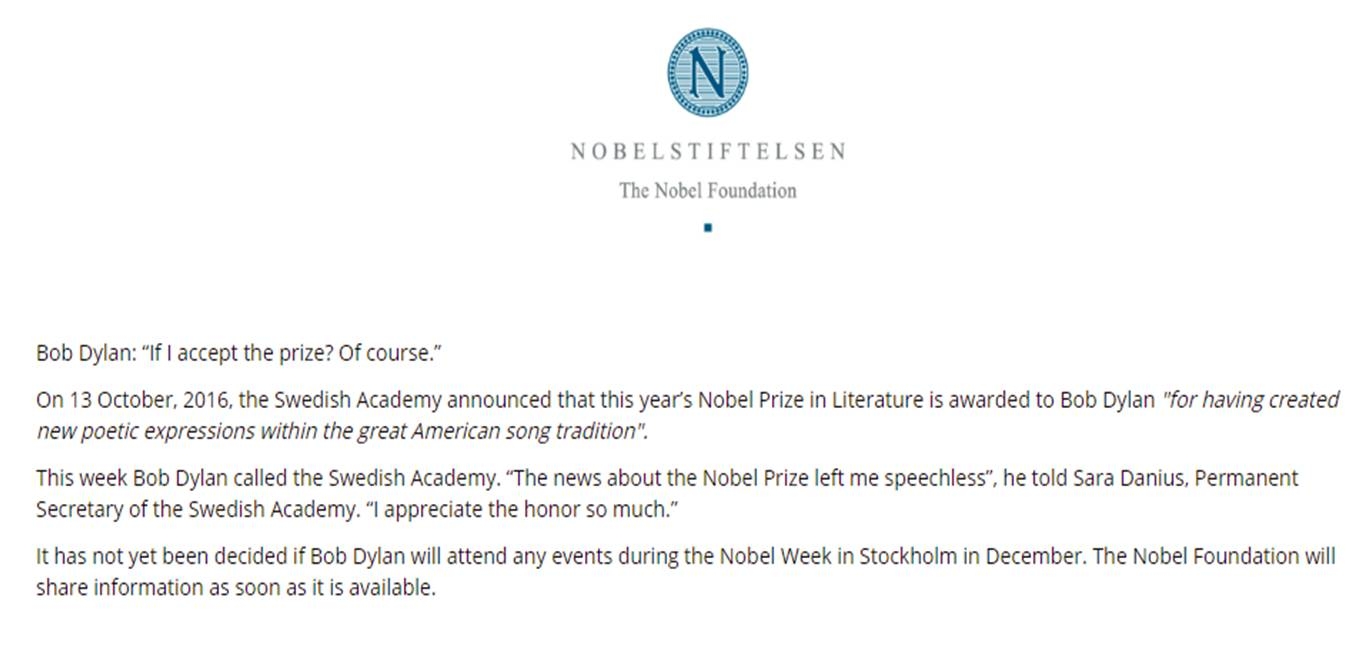 El pasado 13 de octubre, Bob Dylan fue premiado con el Nobel de Literatura y…