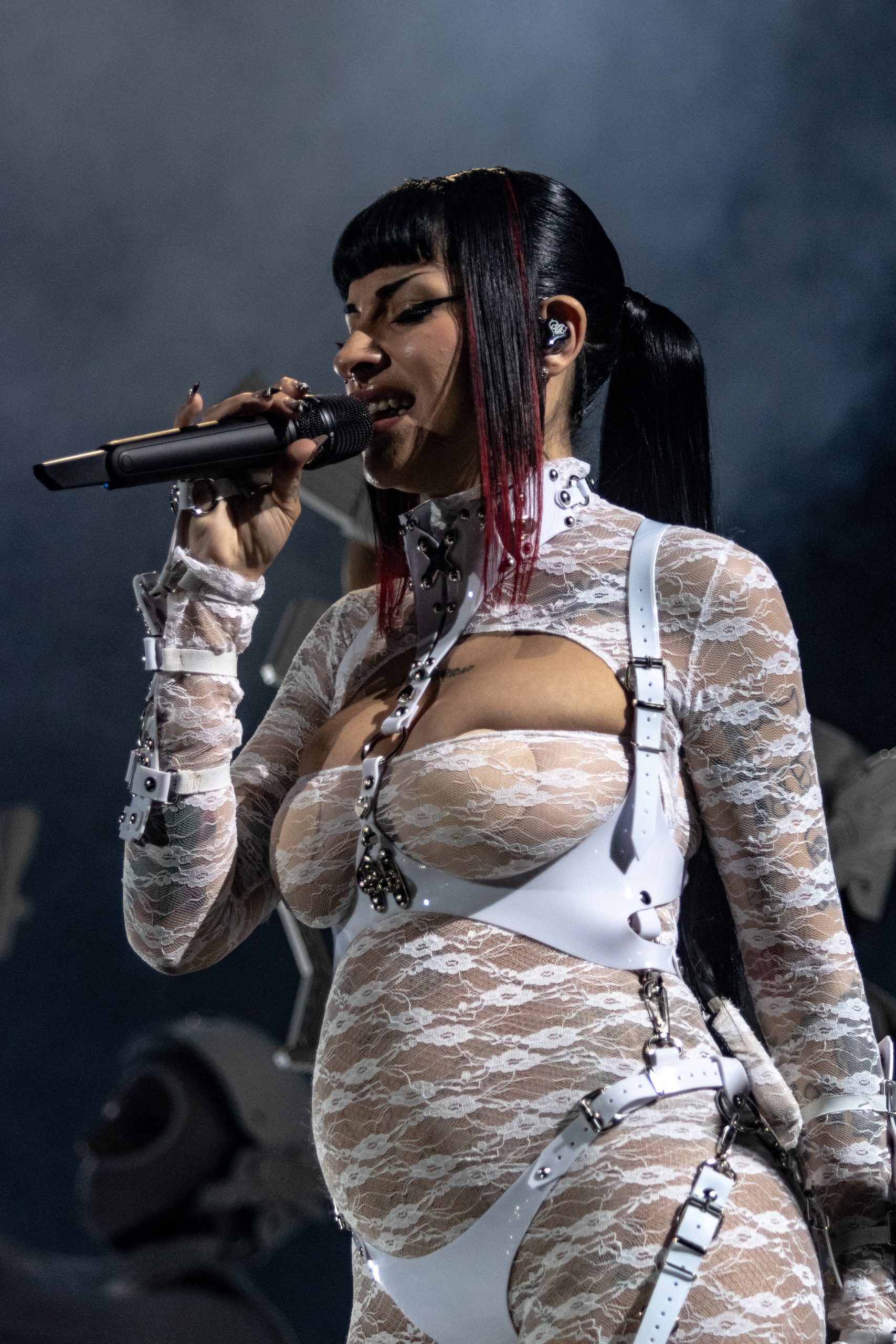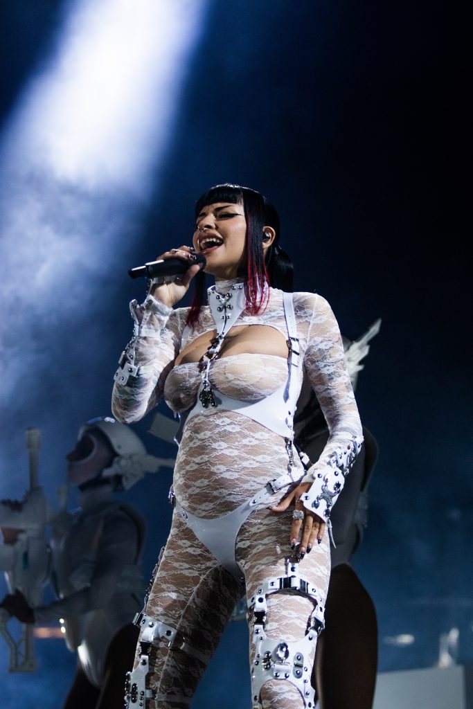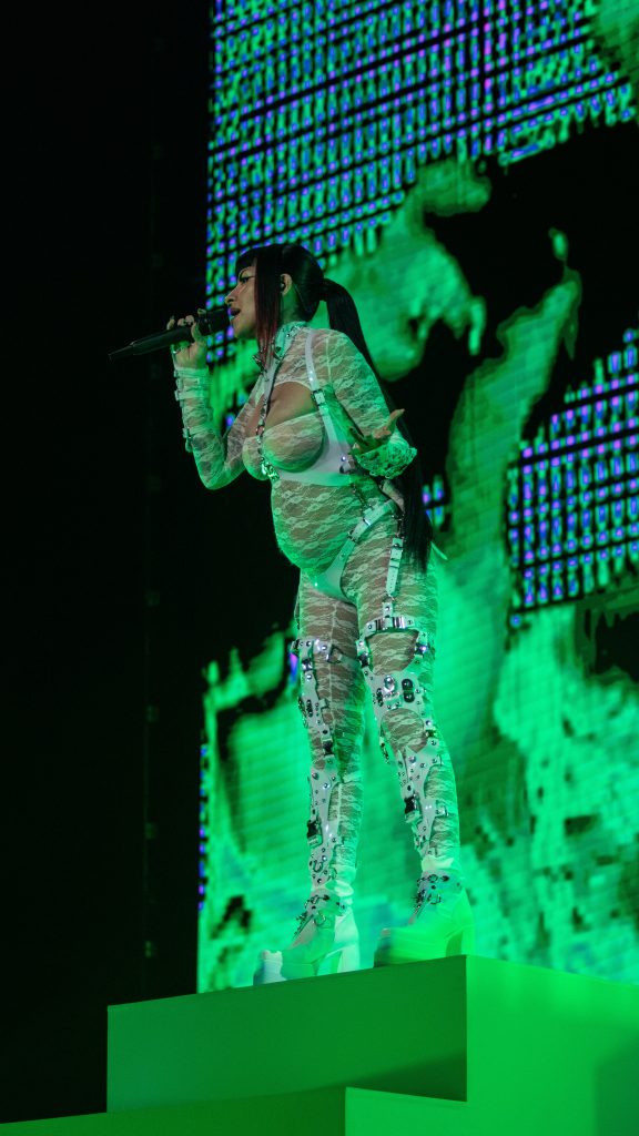 Además de explotar el Movistar, la cantante sorprendió al público con una inesperada noticia al comienzo el show. Con un video en el tema “Jefa”, confirmó… ¡que está embarazada! Miren estas fotos: