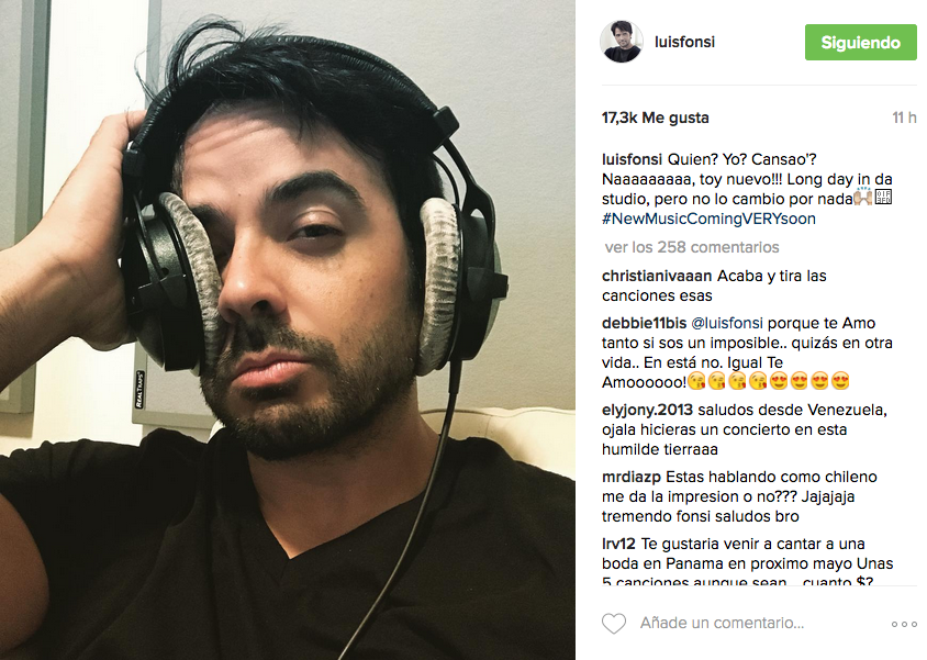 Con el hashtag #NewMusicComingVERYsoon, Luis Fonsi anticipa el lanzamiento de su próximo trabajo discográfico. Aunque declara que está cansado y los días en el estudio se tornan un poco largos, confiesa que no lo cambia por nada.