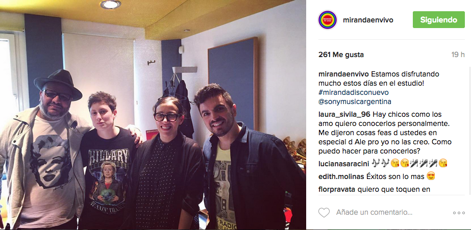 La grabación de su nuevo trabajo le sirve de pretexto a Miranda! para mostrar, a través de sus redes, lo mucho que se divierten en el estudio de grabación. Aunque el lanzamiento del álbum está previsto para el año próximo, el grupo dará a conocer mañana su nuevo single “743”. El esperado corte se estrenará simultáneamente con el videoclip y coincidirá con la celebración de sus 15 años de carrera.
