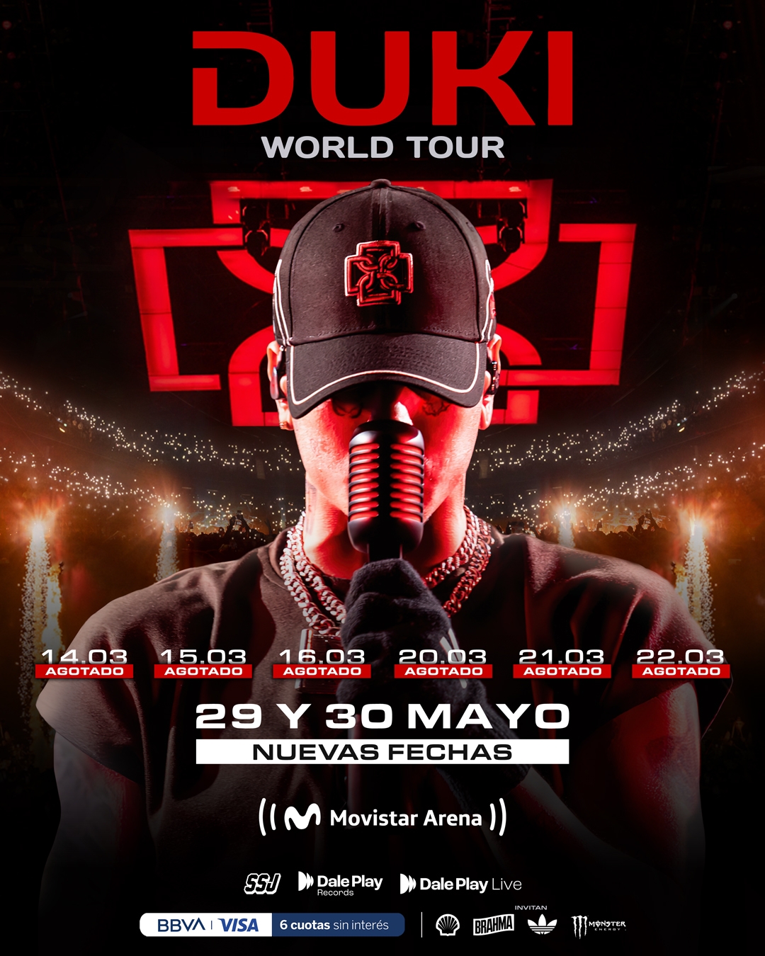 Con más de 350.000 entradas vendidas en las primeras horas y presentaciones programadas en 12 países, agotando funciones y añadiendo nuevas fechas en cada destino, su WORLD TOUR es mucho más que la presentación de un álbum: es un punto de inflexión en la carrera de Duki.