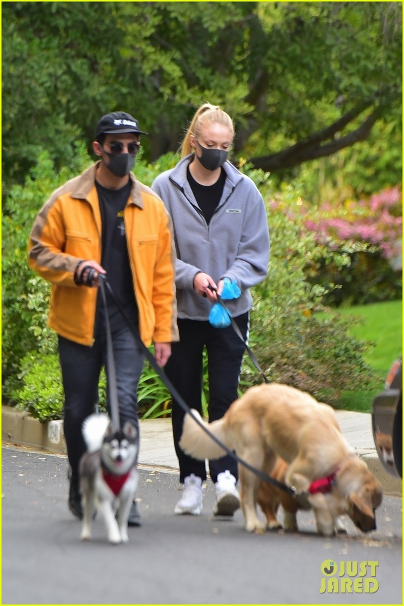 Los músicos están aprovechando el tiempo en cuarentena para pasar tiempo con sus familias. Joe Jonas no es la excepción y junto a su esposa Sophie Turner encontraron un nuevo pasatiempos: pasear a sus perros. Fueron vistos en varias oportunidades saliendo de su casa en Los Ángeles para llevar a sus mascotas a dar un paseo, siempre utilizando tapabocas.