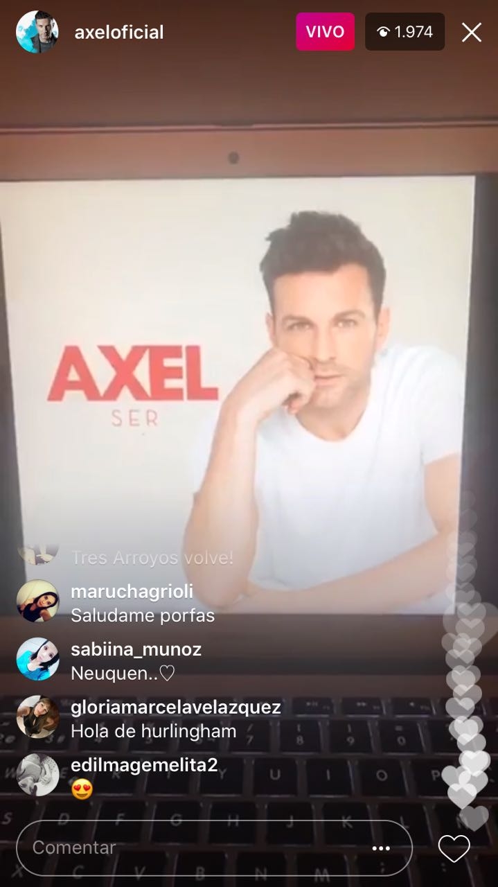 Durante el vivo, también aprovechó para hablar con el público y saludar a los seguidores que de a poco se fueron sumando a la transmisión. Axel no estaba solo; unos amigos lo acompañaban y también representantes de la discográfica, de quienes se escondió para poder mostrarle a sus fans la tapa de “Ser”.