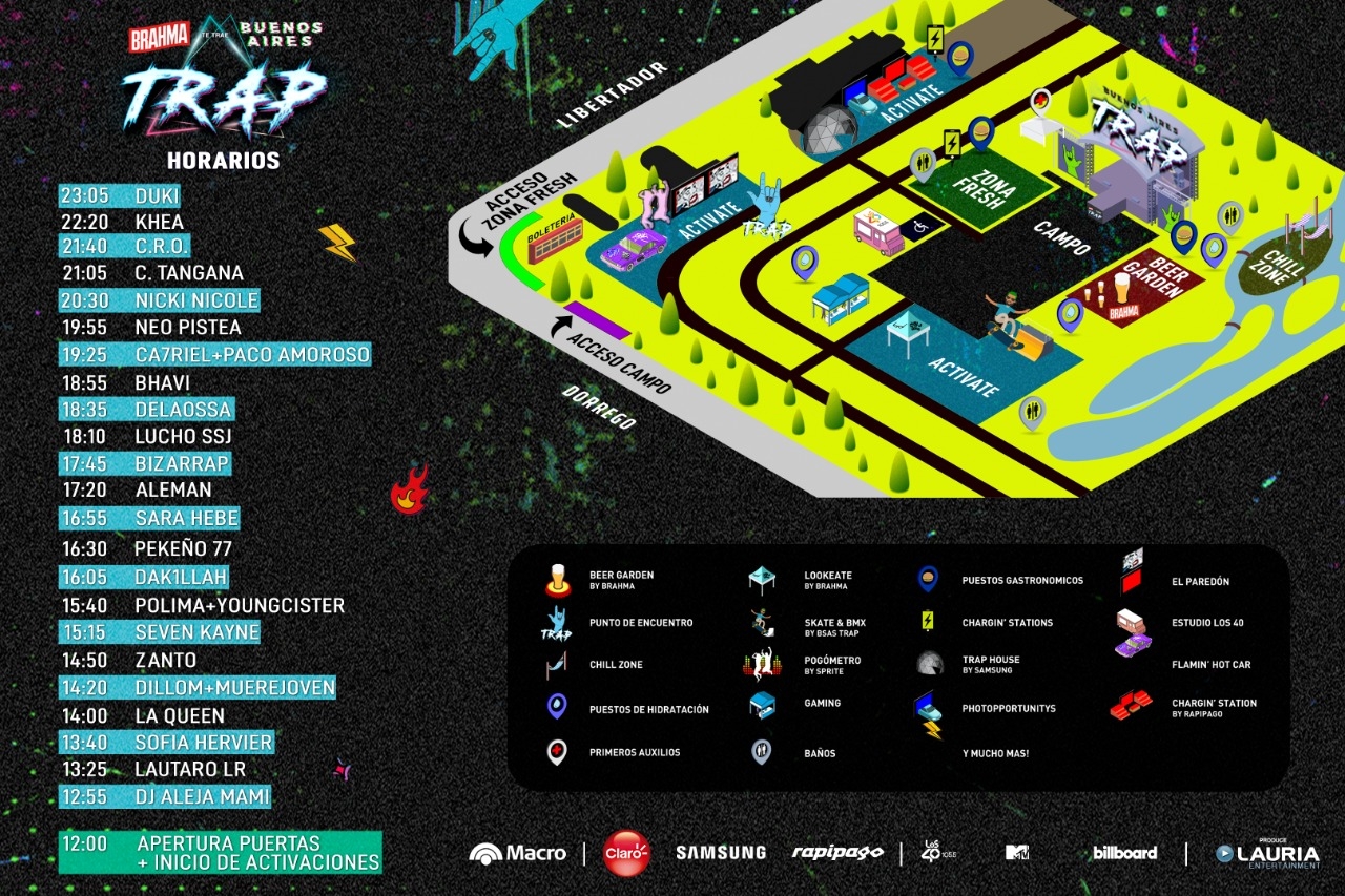 Además de los shows habrá activaciones como el Beer Garden de Brahma, un Skate & BMX Park, exposiciones de El Paredón, Gaming Stations; la carpa “Lookeate” y las mejores photo-opportunities además de Food Trucks, Charging Stations, Áreas Chillin y mucho más.