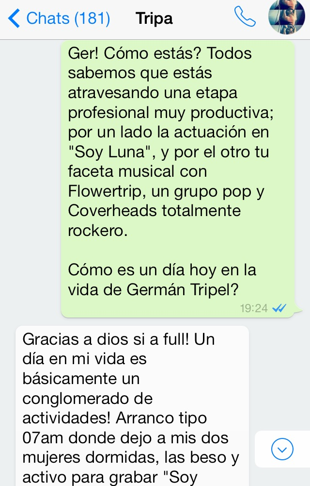 “Soy Luna”, Flowertrip y Coverheads confluyen hoy en la vida de Germán “tripa” Tripel, que…