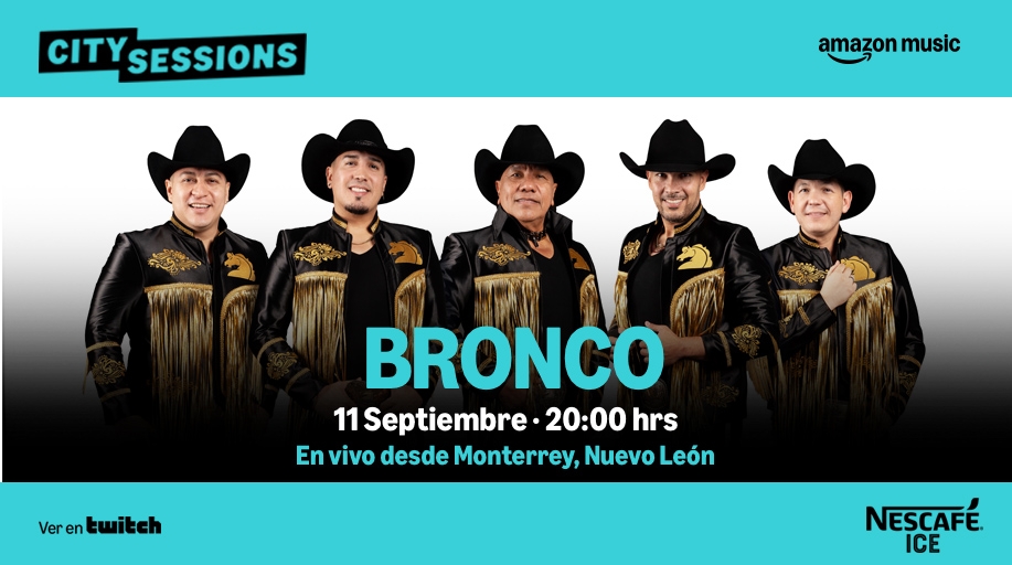 City Sessions de Amazon Music, fiel a su compromiso de destacar el talento global y fomentar el intercambio cultural a través de la música, anuncia el tercer episodio a cargo de Grupo Bronco, la banda de regional mexicana, quienes harán bailar a todos con su estilo grupero y haciendo un recorrido por su amplio repertorio.