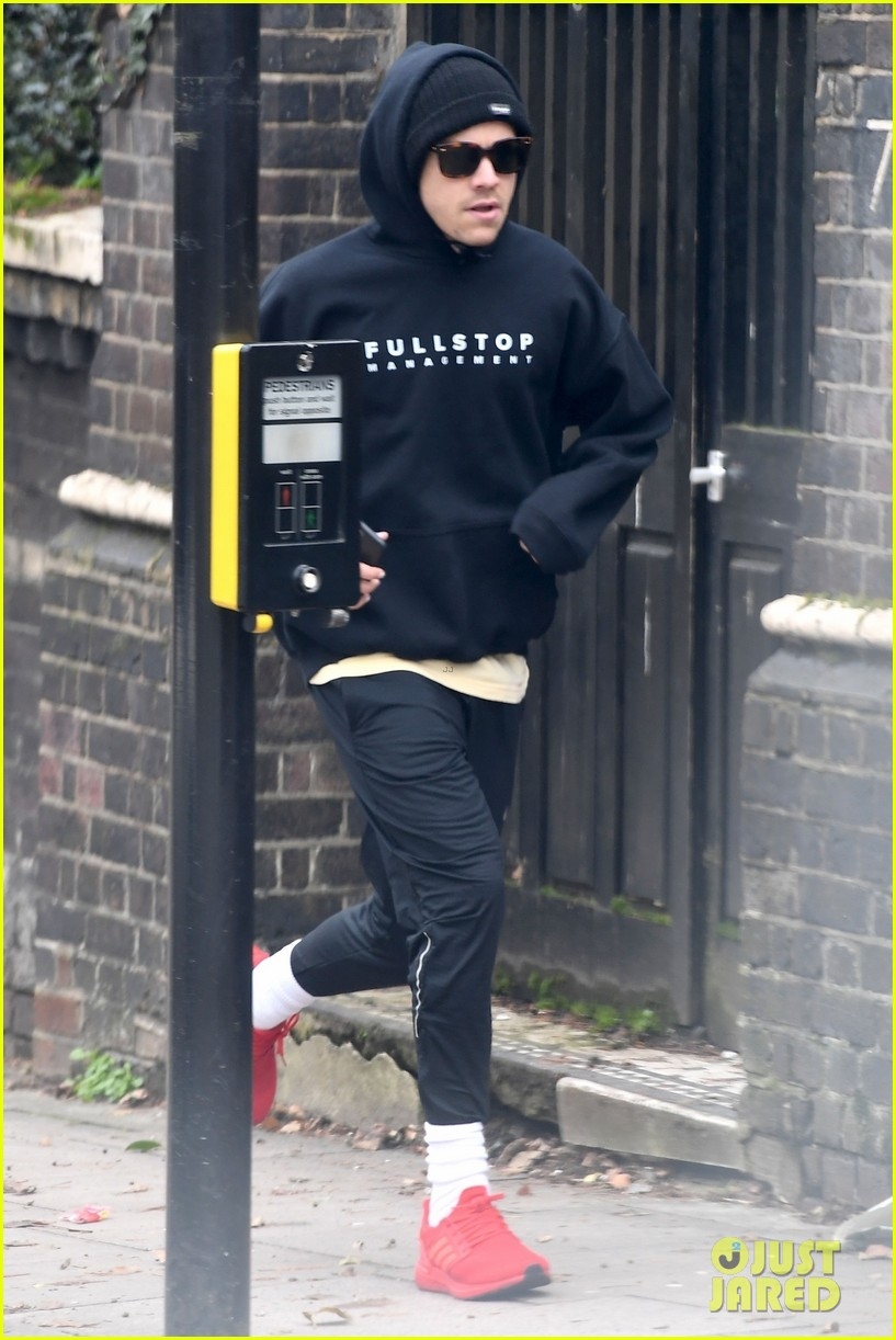 Harry Styles salió a correr en el día de ayer por su barrio. Para pasar desapercibido usaba un buzo negro, gorro y anteojos de sol. El ex One Direction se encuentra en Londres mientras se prepara para cantar en los BRIT Awards para los cuales también ha sido nominado en dos categorías.