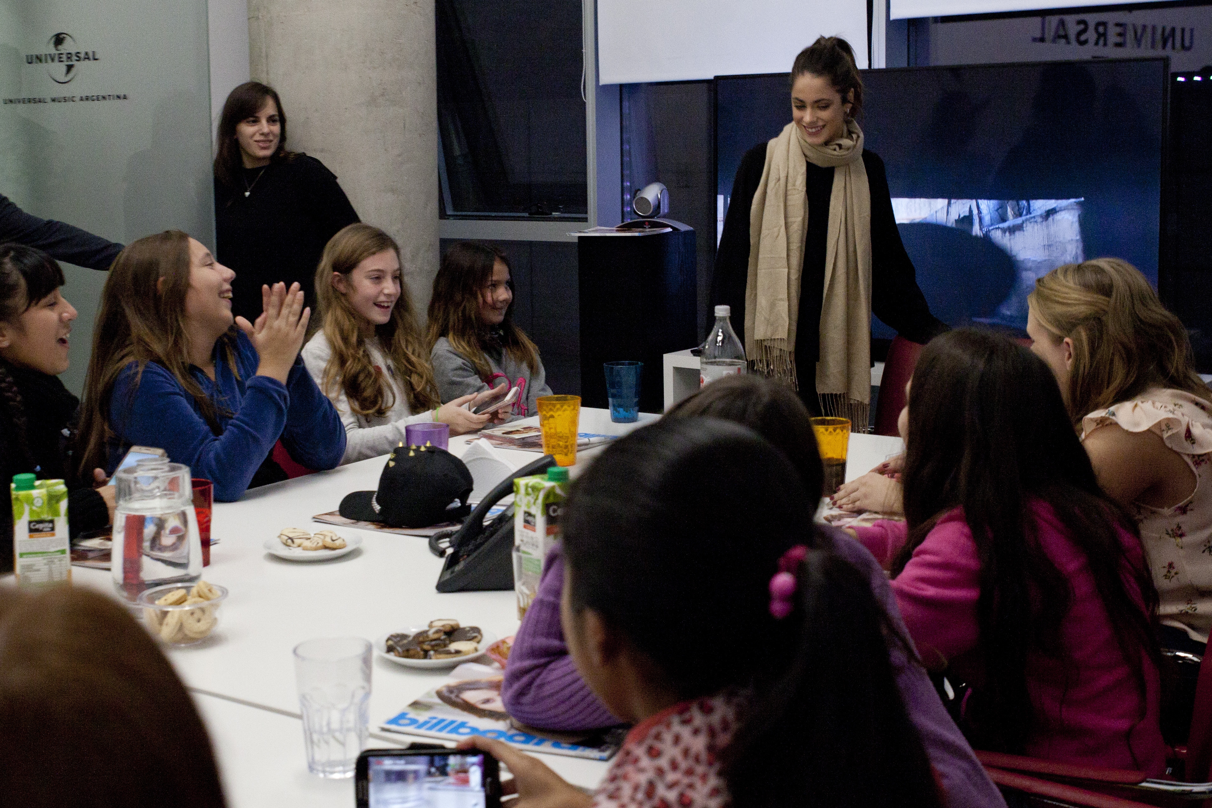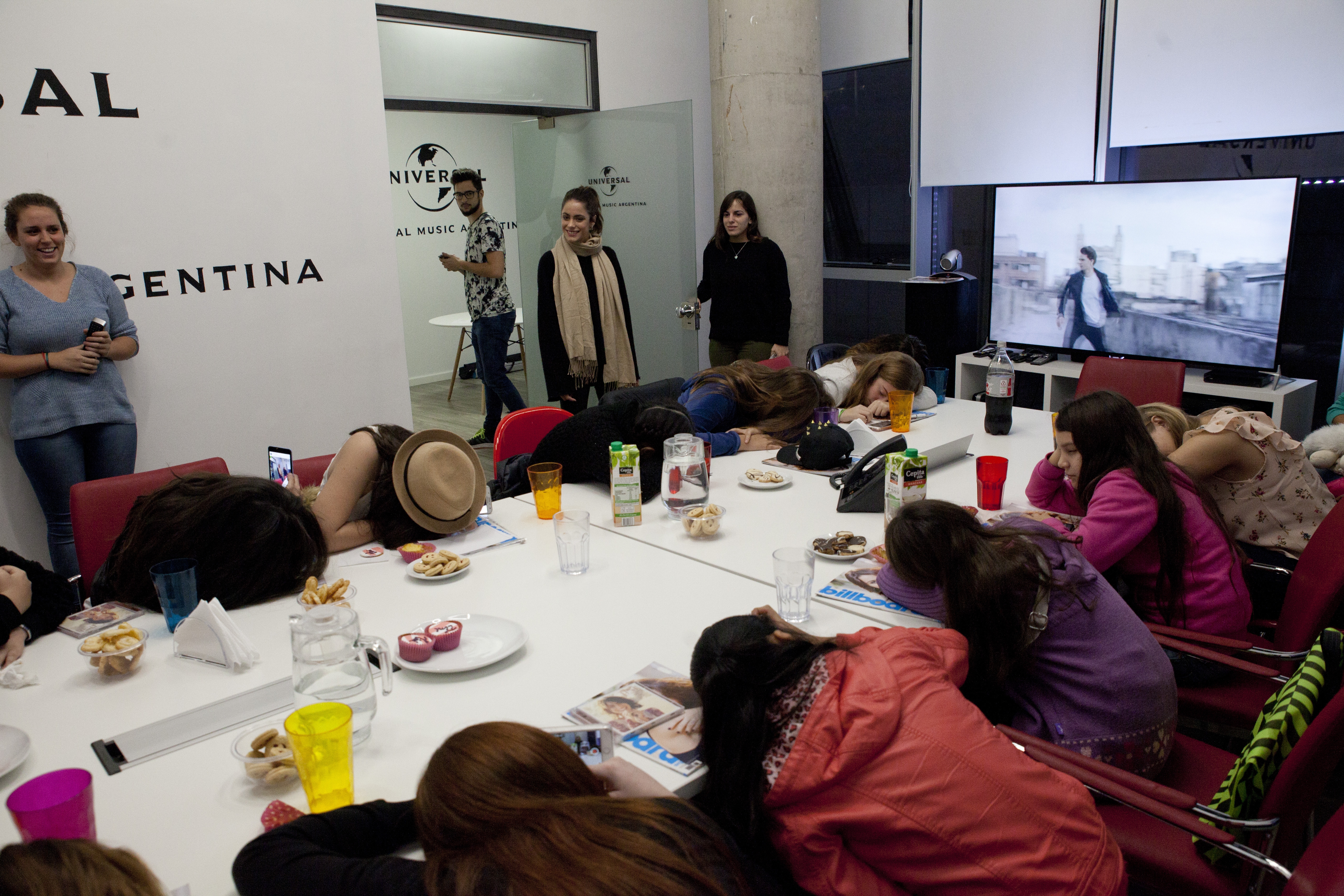 Como resultado del sorteo, ayer 15 fans tuvieron la oportunidad de merendar con Tini. La cantante llegó a las oficinas de Universal a las 18 hs., para compartir la tarde con las ganadoras, pero las encontró ¿dormidas?