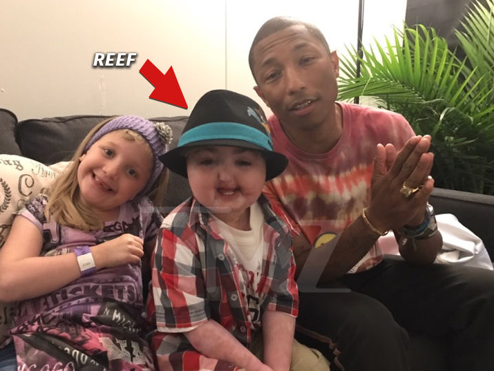 Antes de viajar al Reino Unido para presentarse en One Love Manchester, Pharrel Williams le dio una sorpresa a Reef Carneson, un niño de ocho años de edad que padece leucemia aguda.