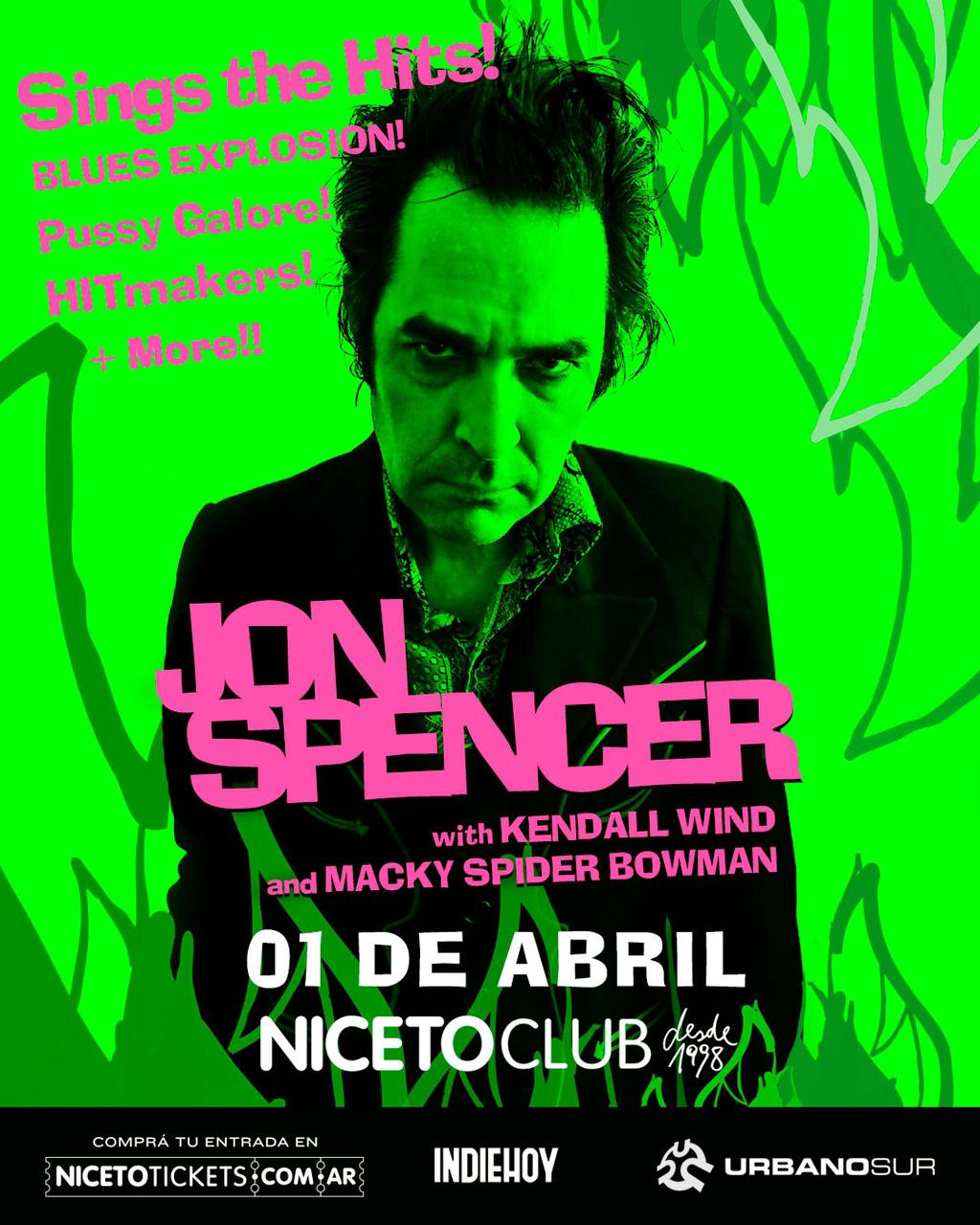 Jon Spencer es el creador de una música feroz con influencia punk que abarca todo, desde blues hasta Noise Industrial y Hip-Hop, y estará interpretando los hits de Blues Explotion, Pussy Galore y HITmakers.
