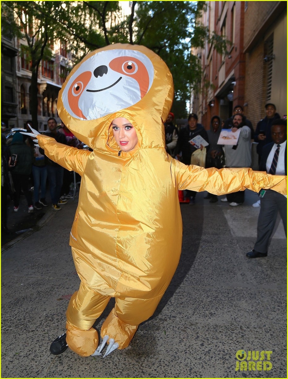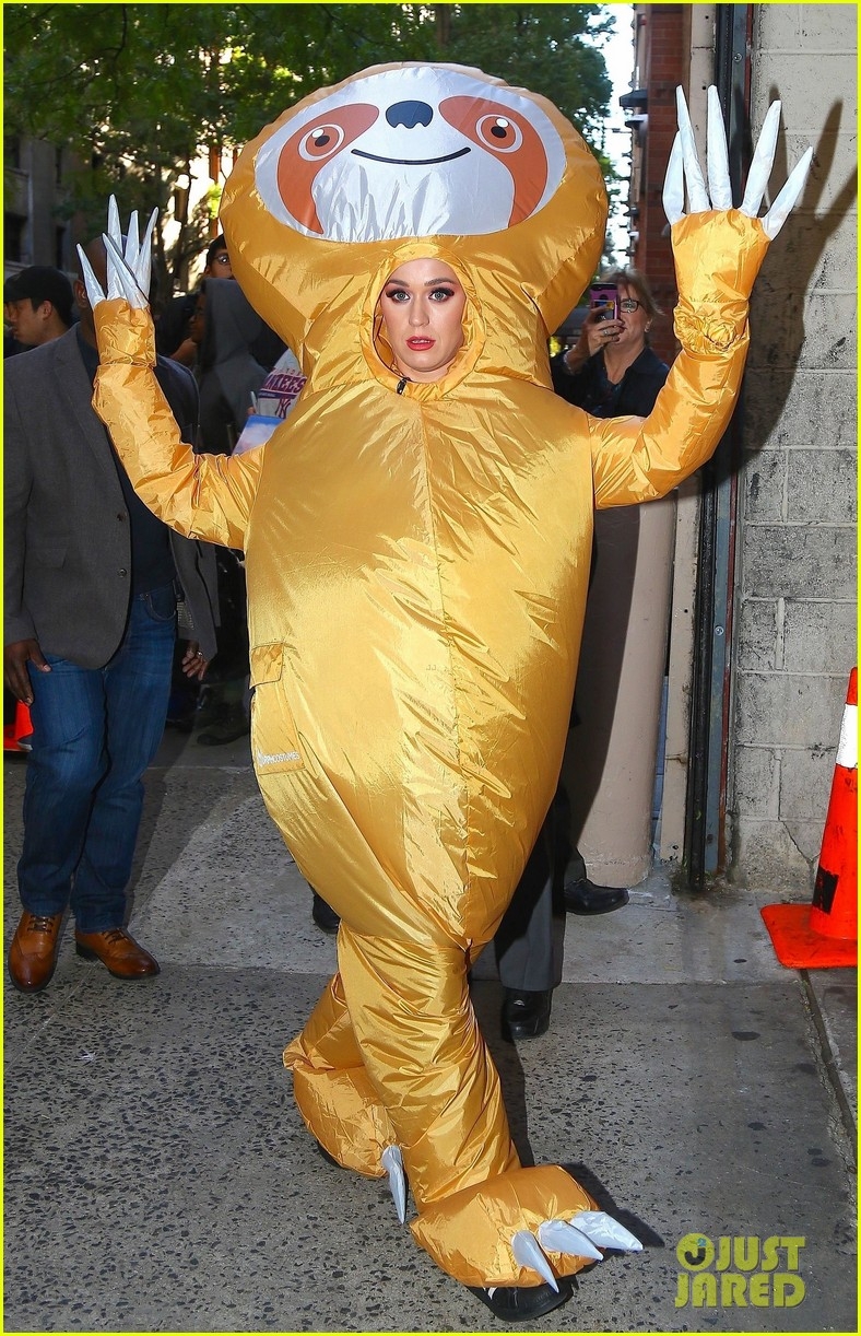 Durante todo el mes de octubre, los músicos se prepararon para Halloween de las maneras más insólitas, pero Katy Perry sin dudas se quedó con el primer lugar.Esta tarde, la cantante se adelantó a los festejos… Katy fue vista corriendo por las calles de la ciudad de Nueva York ¡con un disfraz gigante de perezoso!Mirá: