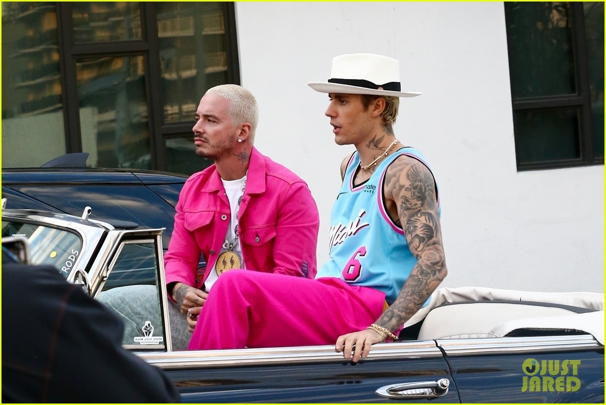 Justin manejaba un convertible con Balvin de acompañante. El tema ya tiene nombre: “La Bomba”.