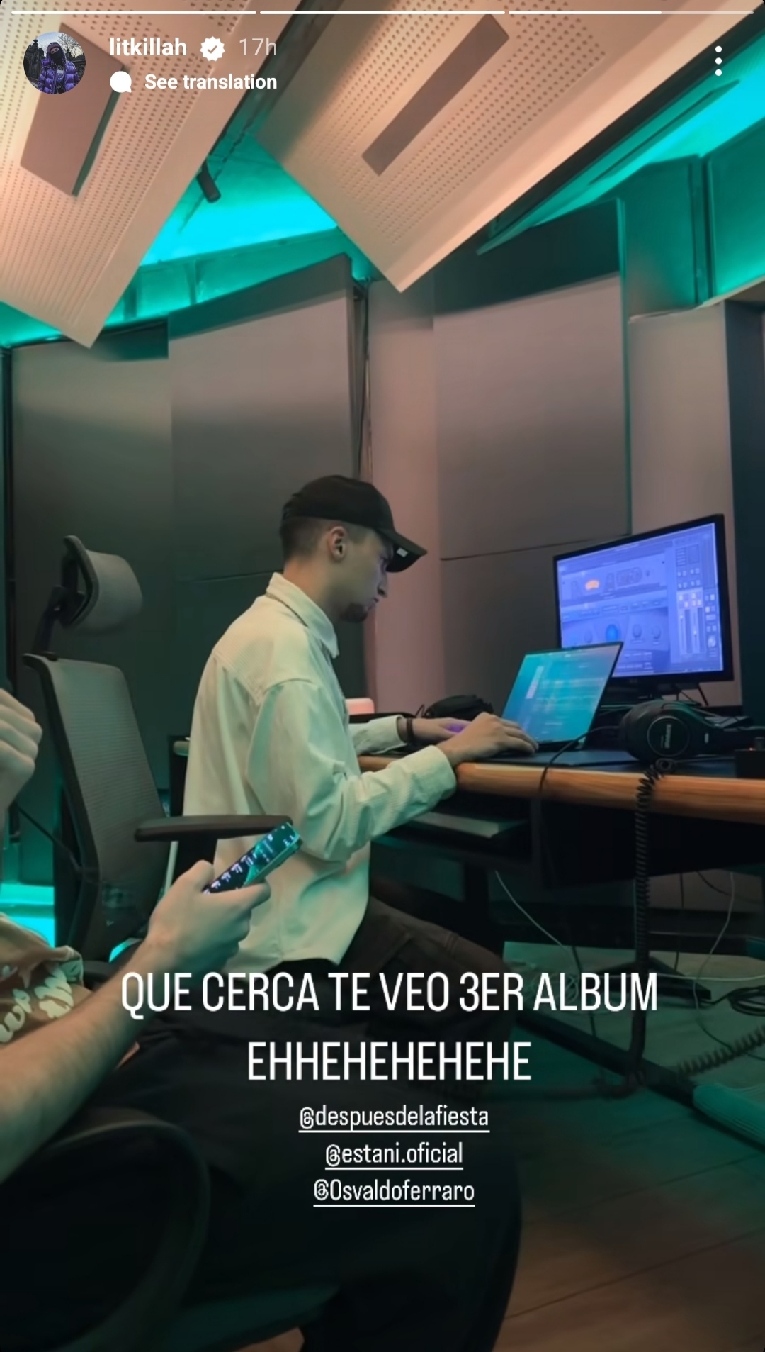 Lit Killah compartió una historia de Instagram donde se lo ve en el estudio trabajando de lleno en su tercer álbum.