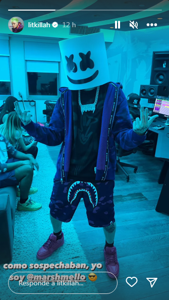 En plena sesión de grabación en el estudio, el cantante argentino compartió una storie que llamó la atención de todos: “Como sospechaban, yo soy @marshmello”, escribió.