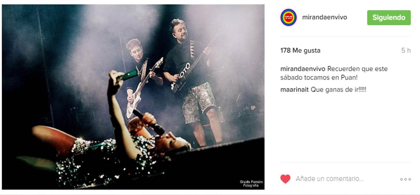 Una tendencia que se instaló durante el último tiempo sobre el escenario es que los artistas se filmen con celulares que agarran del público. Así lo hizo Juliana Gattas que, en medio del último show de Miranda!, se sacó una selfie muy particular.