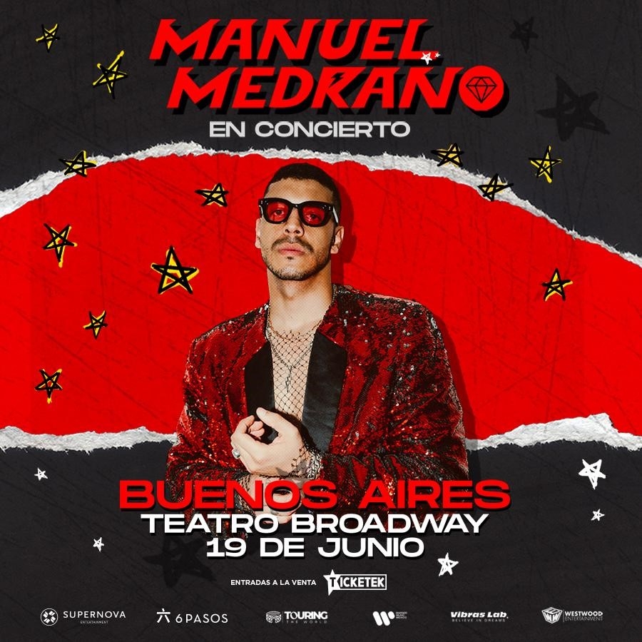 Llega a la Argentina el ganador de 2 Premios Grammy Latino: Mejor Nuevo Artista y Mejor Álbum: Manuel Medrano. Sí, leyeron bien. El cantante se presentará el próximo 19 de junio en el emblemático Teatro Broadway para disfrutar junto a sus fans sus grandes hits como “Bajo el agua”, “Afuera del planeta”, “La mujer que bota fuego”, “Una y otra vez”, “Nenita”, “Tengo que llegar a tiempo” y “La Distancia”, entre otros.