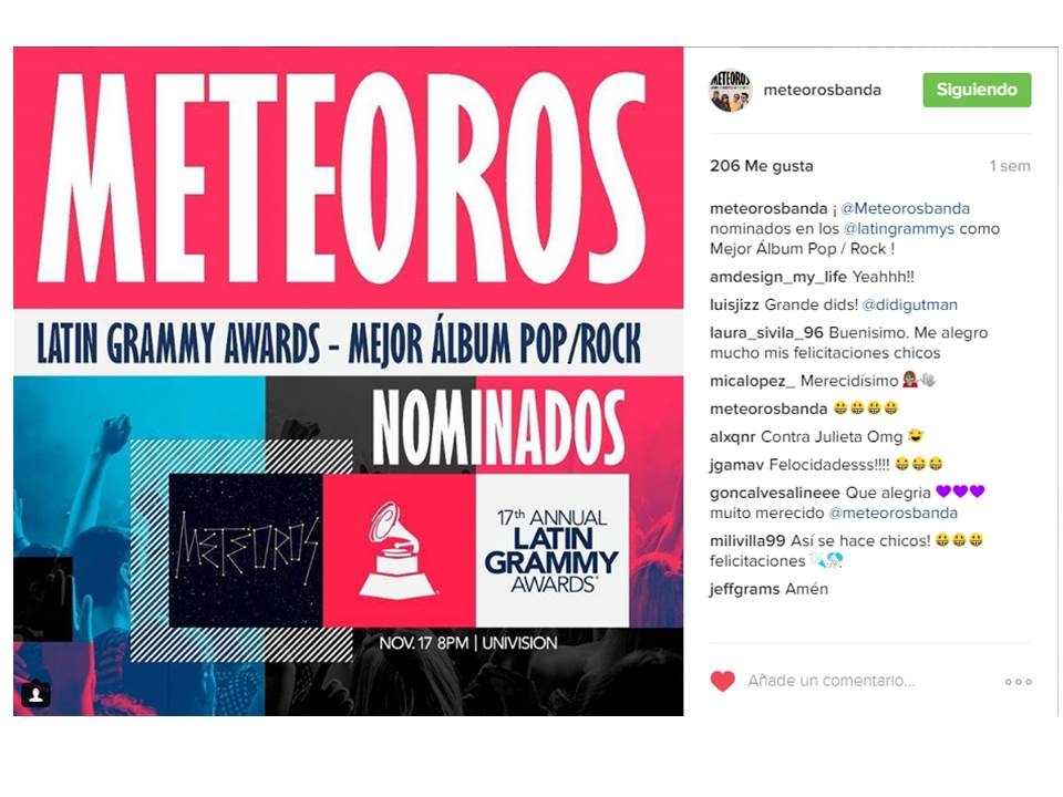 Meteoros está nominado a los Latin Grammy por la categoría Mejor álbum pop/rock