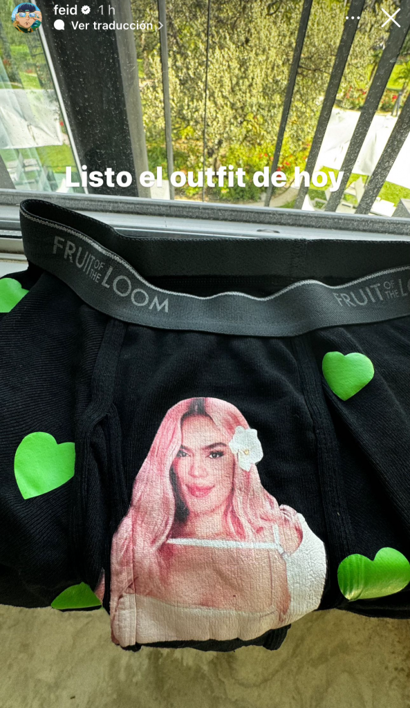 Feid compartió en sus historias el outfit que eligió para el show Karol G en el Santiago Bernabéu.