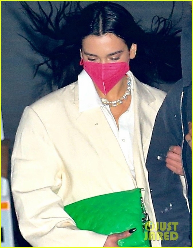 La cantante uso un blazer oversized de color crema combinado con medias de colores y zapatos verdes, mientras que el modelo se vistió informal de jeans y zapatillas. ¡Mira las fotos!