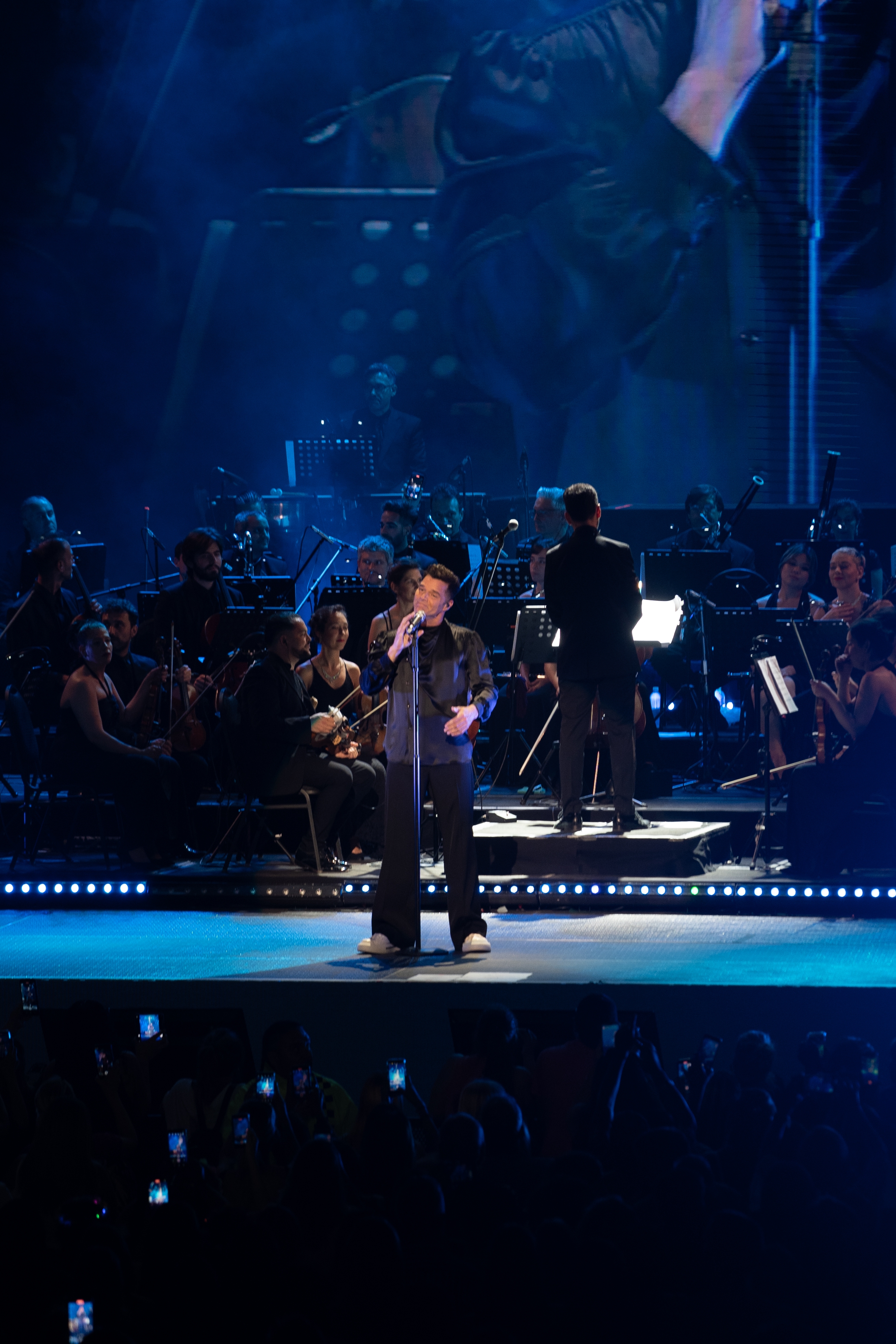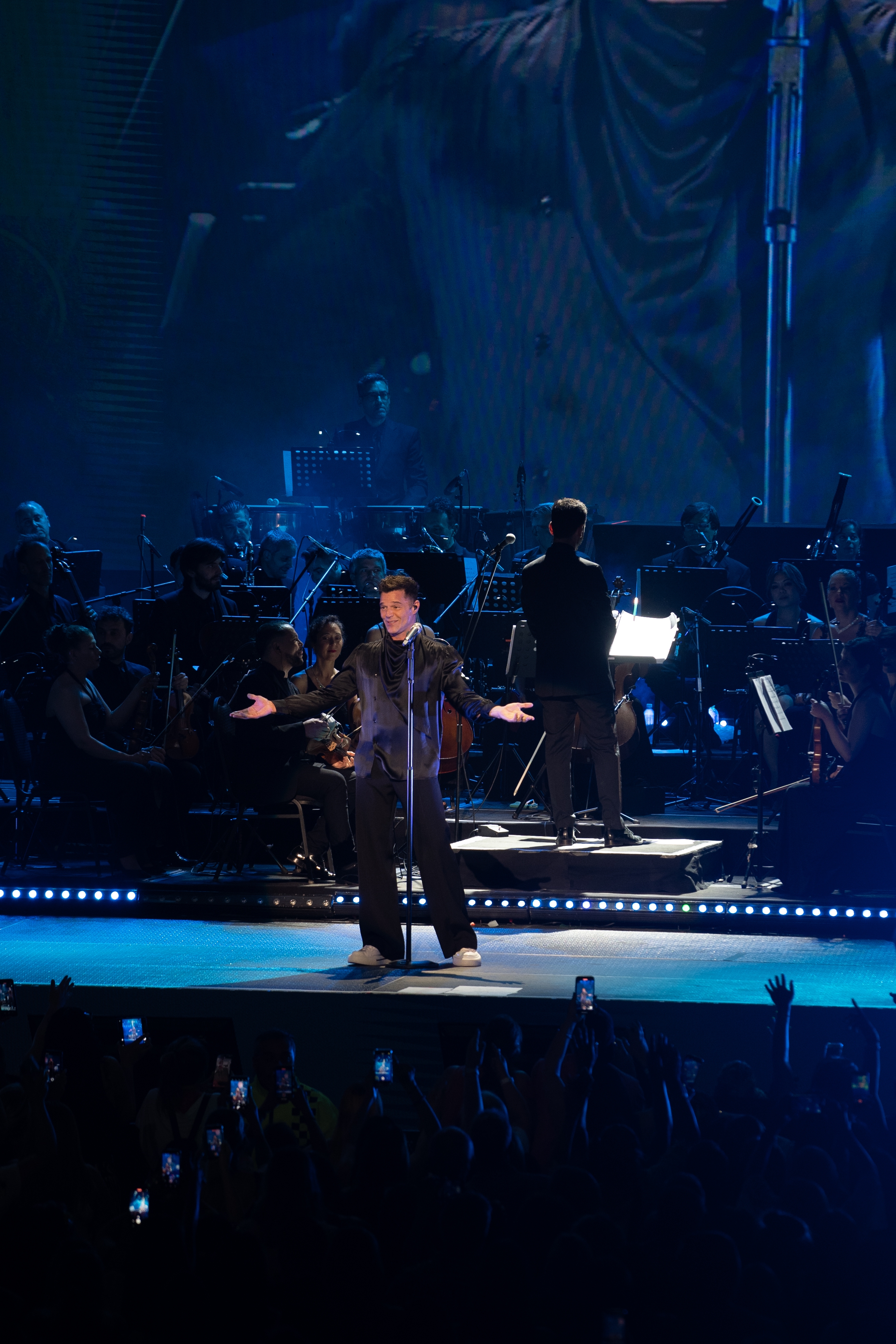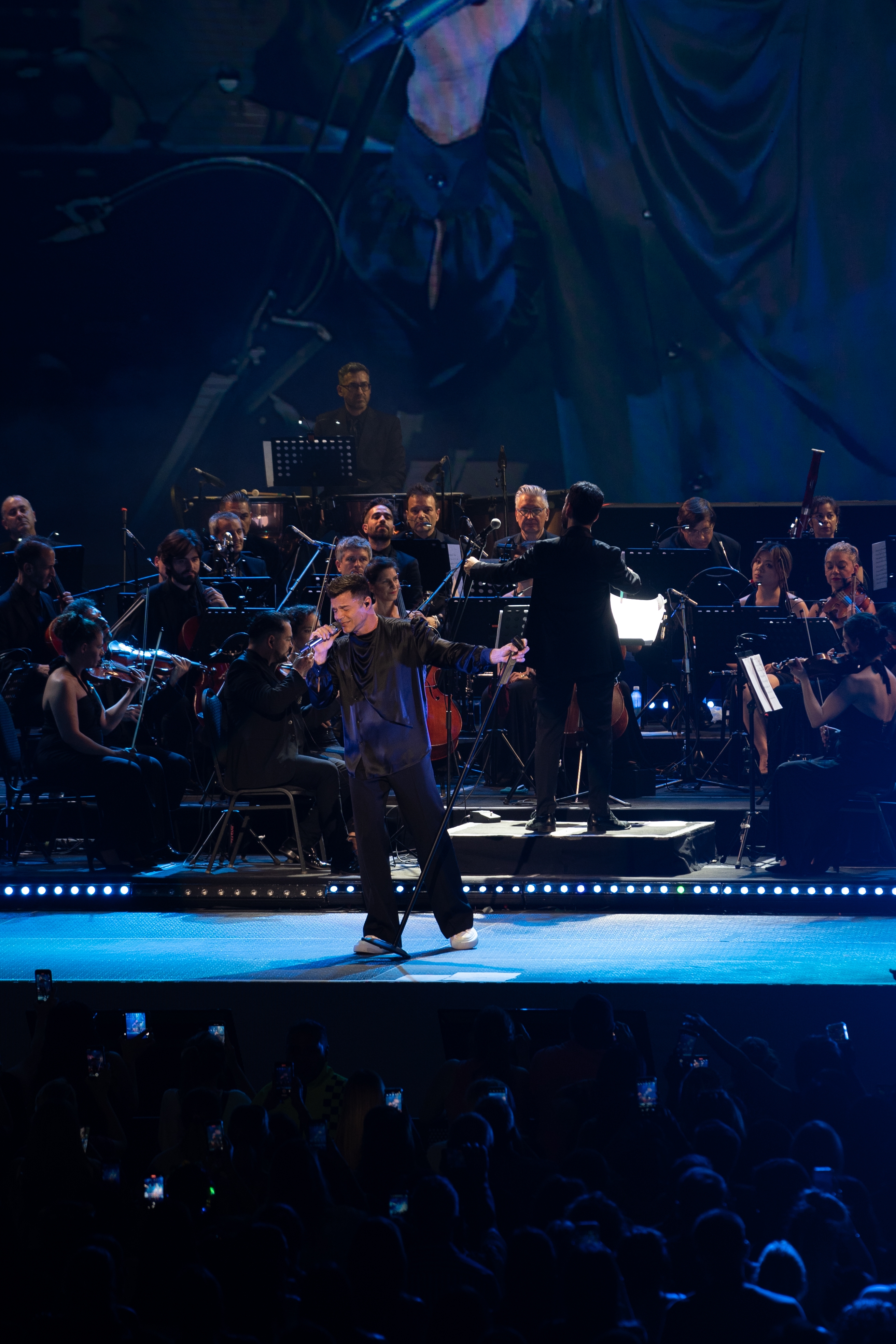 Ricky Martin Sinfónico es el nuevo show con el cual llegó al país, con un imponente despliegue en escena para este espectáculo musical que une al artista de vasta trayectoria y fama mundial con una orquesta sinfónica compuesta por más de 50 músicos sumados 9 de la propia banda del astro boricua.