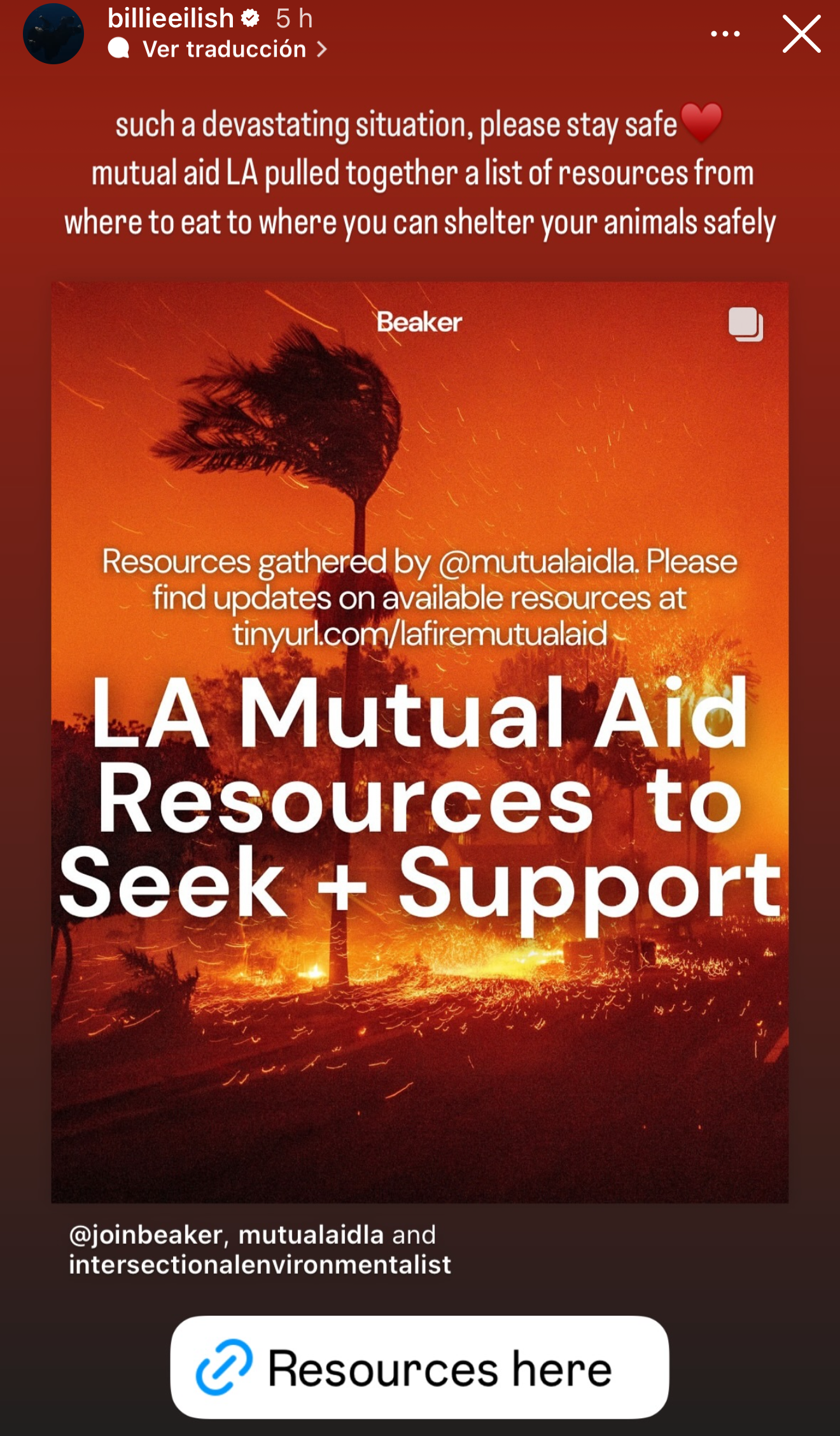 Muchos de tus artistas preferidos mostaron su preocupación con la situación y compartieron sus mensajes de apoyo para los damnificados, así como para los bomberos que se encuentran trabajando incansablemente en el lugar.