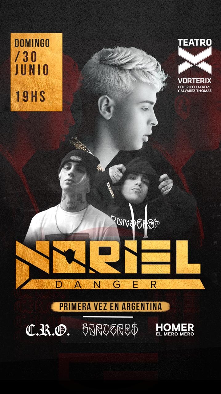 En el marco de su Danger Tour, Noriel, uno de los máximos exponentes del trap internacional, está llegando a nuestro país para subirse al escenario por primera vez en Buenos Aires. ¿Listos?Después de superar las 13 millones de reproducciones en YouTube con su último sencillo “No te hagas la loca” junto a Manuel Turizo, el puertorriqueño está listo para más. Por eso, el próximo 30 de junio, llega al Teatro Vorterix con un show único que va a dar qué hablar.Por si fuera poco, C.R.O, Bardero$ y Homer El Mero Mero estarán ahí para acompañarlo.Las entradas ya están a la venta en boleterías del teatro o por Sistema All Access: www.allaccess.com.ar.
