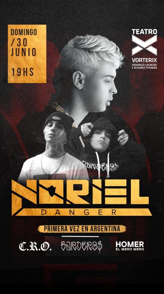 En el marco de su Danger TourNoriel, uno de los máximos exponentes del trap internacional, está llegando a nuestro país para subirse al escenario por primera vez en Buenos Aires. ¿Listos?Después de superar las 13 millones de reproducciones en YouTube con su último sencillo “No te hagas la loca” junto a Manuel Turizo, el puertorriqueño está listo para más. Por eso, el próximo 30 de junio, llega al Teatro Vorterix con un show único que va a dar qué hablar.Por si fuera poco, C.R.O, Bardero$ y Homer El Mero Mero estarán ahí para acompañarlo.Las entradas ya están a la venta en boleterías del teatro o por Sistema All Access: www.allaccess.com.arDespués no digas que no te avisamos…