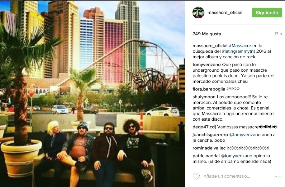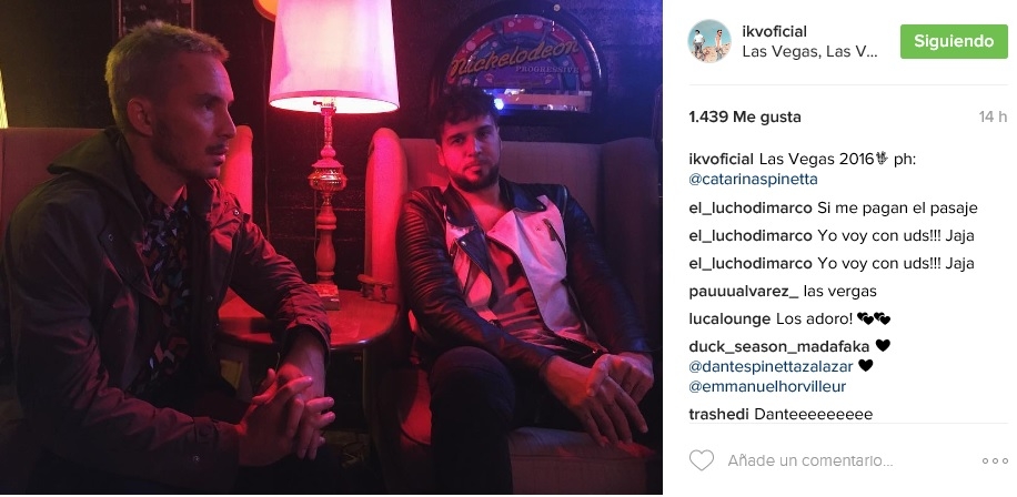 Ya en Las Vegas, los músicos compartieron imágenes en su cuenta de Instagram. Massacre posteó una foto en la que se los ve optimistas “en la búsqueda del #latingrammy 2016”. La banda se encuentra nominada en dos categorías: Mejor Canción de Rock por “Niña Dios” y Mejor Álbum de Rock por Biblia Ovni. Esta última categoría la comparten, entre otros artistas, con sus compañeros de viaje Los Fabulosos Cadillacs, nominados por La salvación de Solo y Juan. En su cuenta oficial, IKV también compartió una foto de la banda en el hotel.