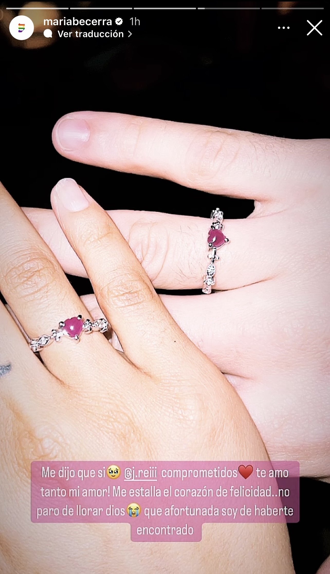 “Me dijo que si! Comprometidos te amo tanto mi amor! Me estalla el corazón de felicidad..no paro de llorar Dios. Que afortunada soy de haberte encontrado” escribió Maria a través de sus historias de Instagram.