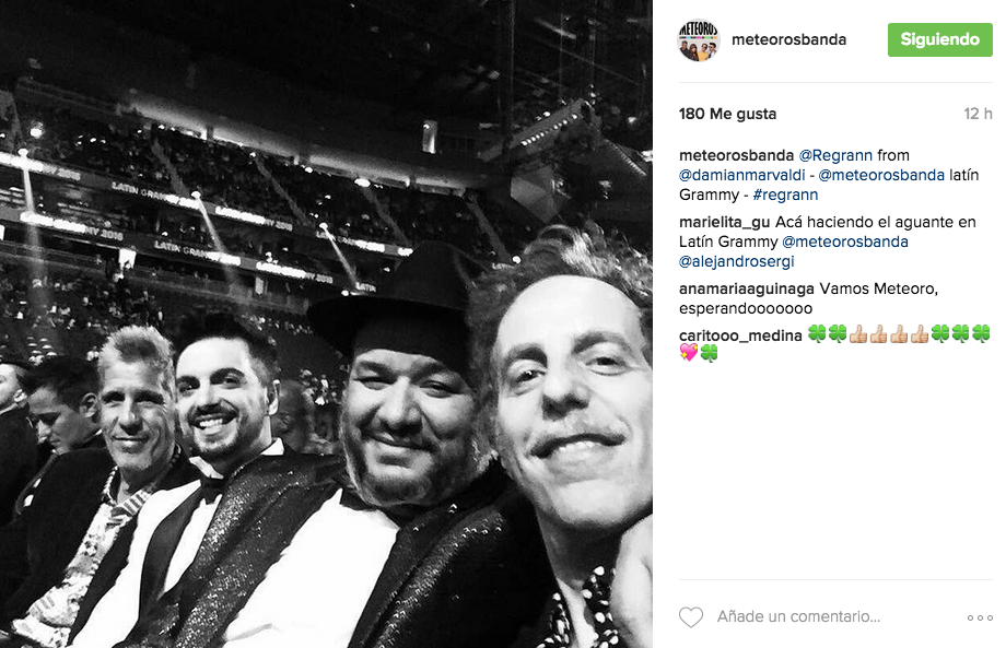 Las músicos también publicaron fotos en plena ceremonia. Los integrantes de Meteoros postearon una imagen de la banda en su cuenta oficial de Instagram. Diego Torres, por su parte, compartió una foto del momento en que cantó junto a Rachel Platten y expresó afectuosamente “Siempre estaré ahí junto a @rachelplatten en los Latin Grammys”. Farruko sorprendió a sus seguidores con dos fotos en las que expuso el momento en el que se tatuó un pequeño gramófono en su dedo índice y otra con el tatuaje terminado.
