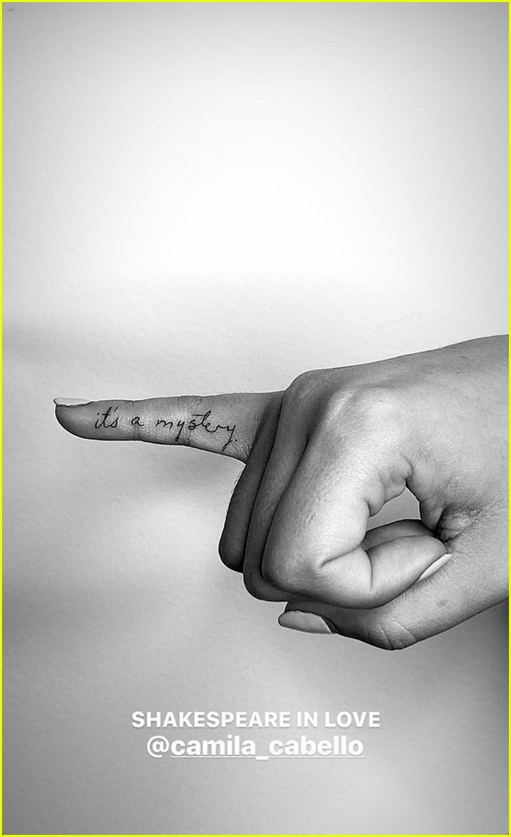 Desde que hicieron pública su relación, Shawn Mendes y Camila Cabello están compartiendo mucho tiempo juntos… ¡hasta para tatuarse!Los cantantes acaban de visitar al artista Kane Navasard y ahora están estrenando un nuevo tatuaje cada uno.Camila eligió una cita de Shakespeare in Love: “Es un misterio”, y la grabó en su dedo meñique derecho.Mientras tanto, Shawn se tatuó una “A”, en honor a su hermana Aaliyah, detrás de su oreja derecha.Otra superestrella que estreno tatuaje esta semana fue Selena Gómez, y se trata de un tatuaje de amistad, compartido nada menos que con su amiga Julia Michaels.¡Mirá los tatuajes de todos ellos!