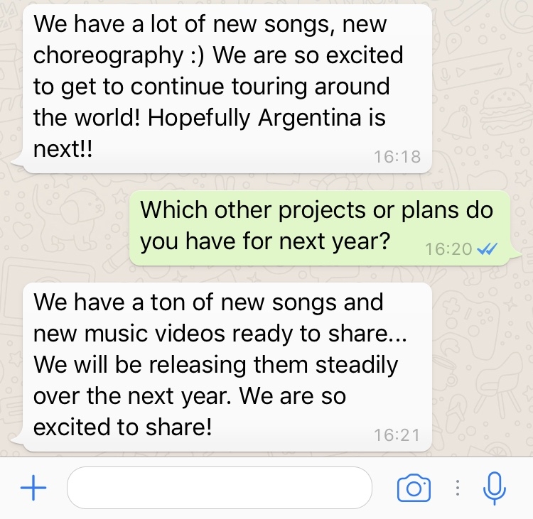 También hablamos de su próxima gira por Europa y nos adelantaron sus planes para el 2018: “Tenemos un montón de nuevas canciones y nuevos videos musicales listos para compartir … Los lanzaremos constantemente durante el próximo año. Estamos muy emocionados por compartirlos!”.