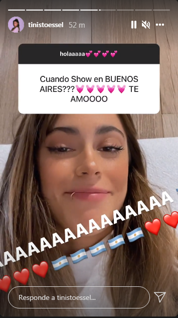 La cantante está cumpliendo la cuarenta obligatoria en Buenos Aires y decidió pasar la tarde respondiendo preguntas de sus fans. De forma totalmente inesperada y días después de la confirmación de esta colboración, TINI dio a conocer un fragmento de 10 segundos del tema.