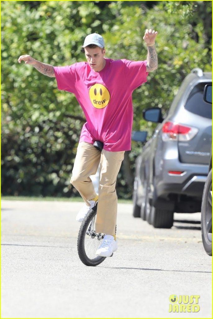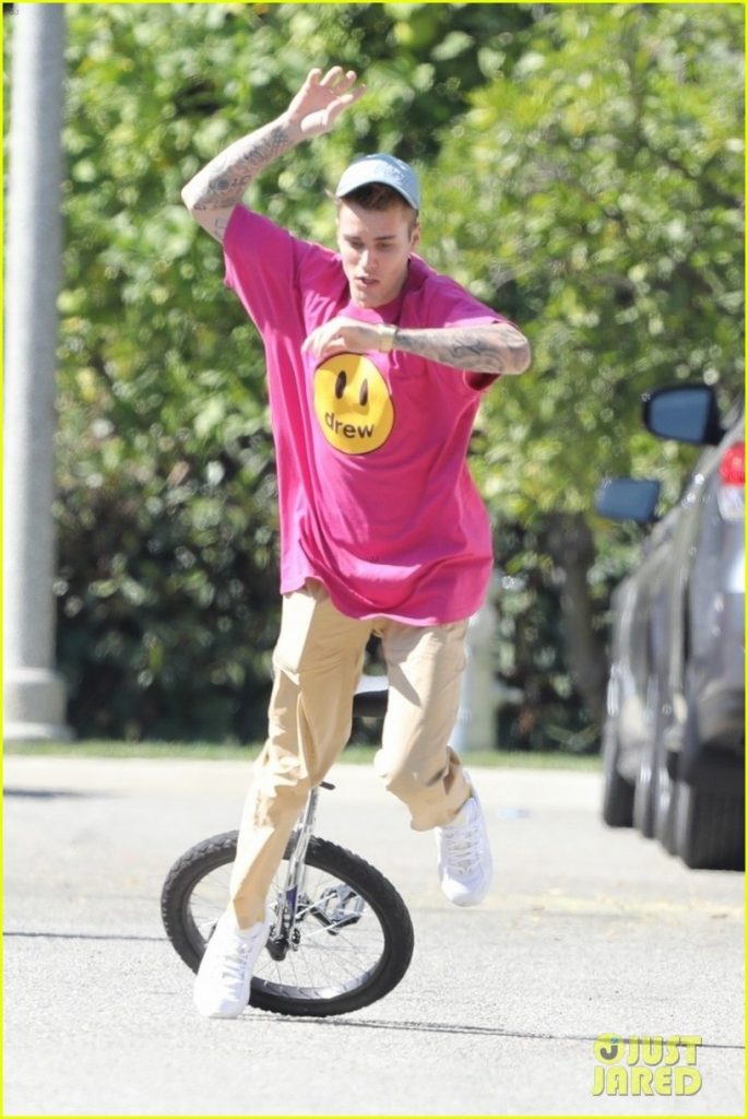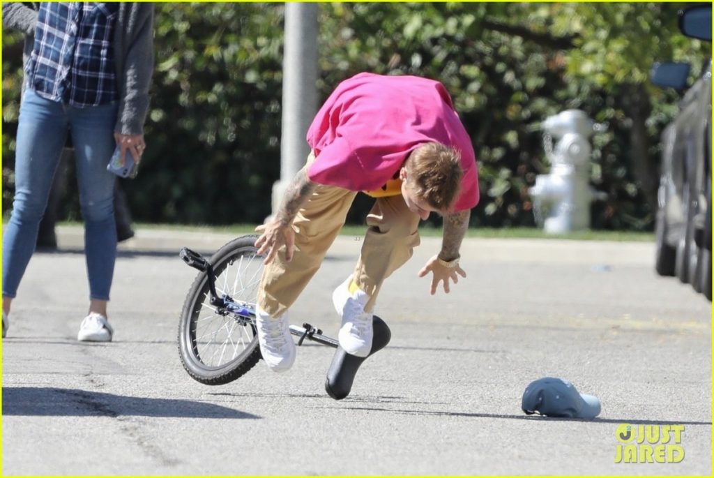 Andar en monociclo no es nuevo para Justin Bieber, pero, aunque tiene práctica, no está libre de caídas… ¡Mirá!