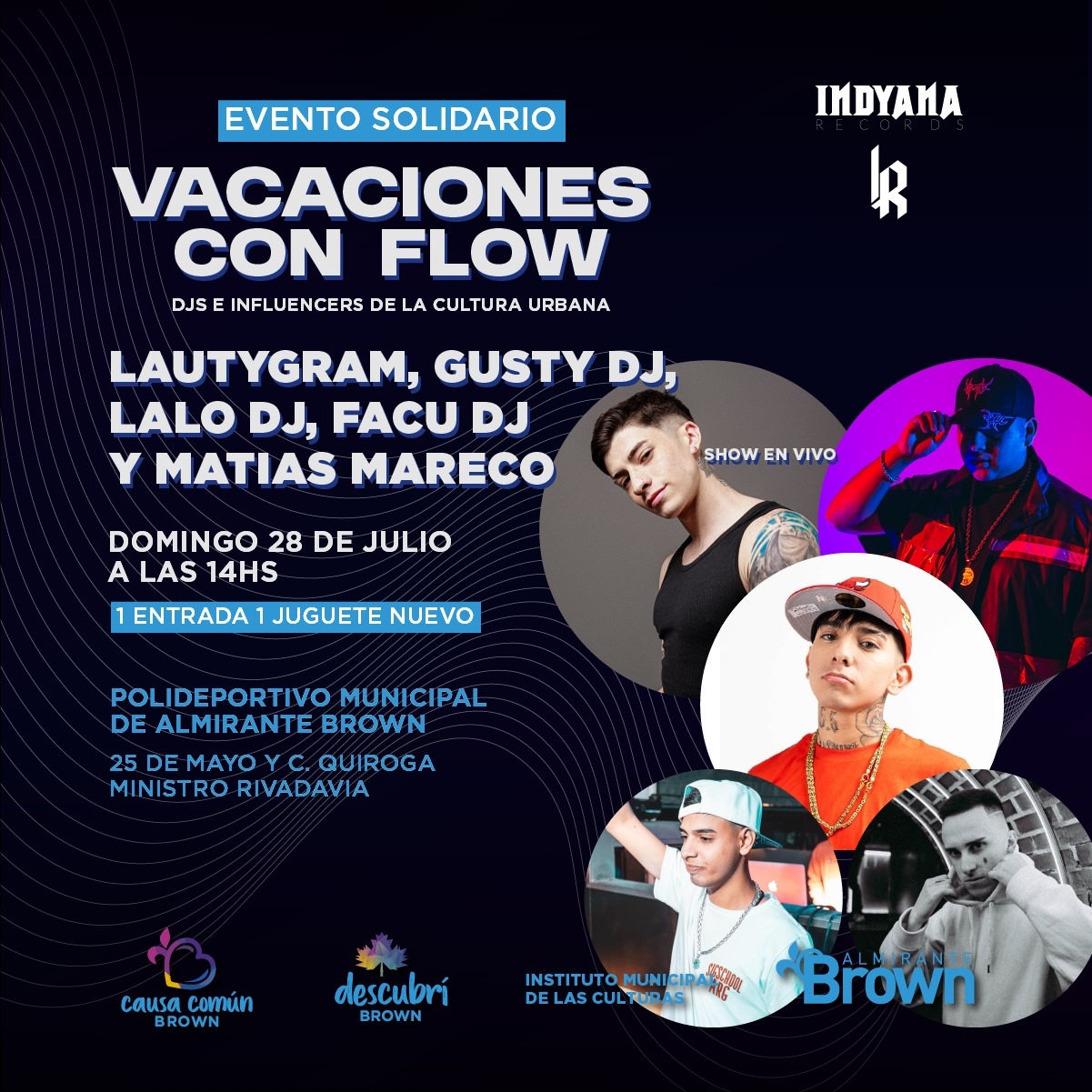 Lauty Gram, Gusty DJ, Juli Savioli, Lalo DJ, DINA, Baby Cue y Virshi DJ, entre otros, se estarán presentando este domingo 28 de julio en el Polideportivo Municipal de Almirante Brown. También tendrá una segunda edición el domingo 4 de agosto en el Microestadio de Lanús.