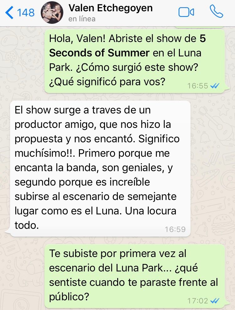 Increíble momento abriendo el show de @5sos en el Luna Park!! Gracias a todos por el recibimiento hermoso que me dieron???? Una publicación compartida de Valen Etchegoyen (@valentinaetchegoyen) el 10 de Sep de 2017 a la(s) 5:36 PDT