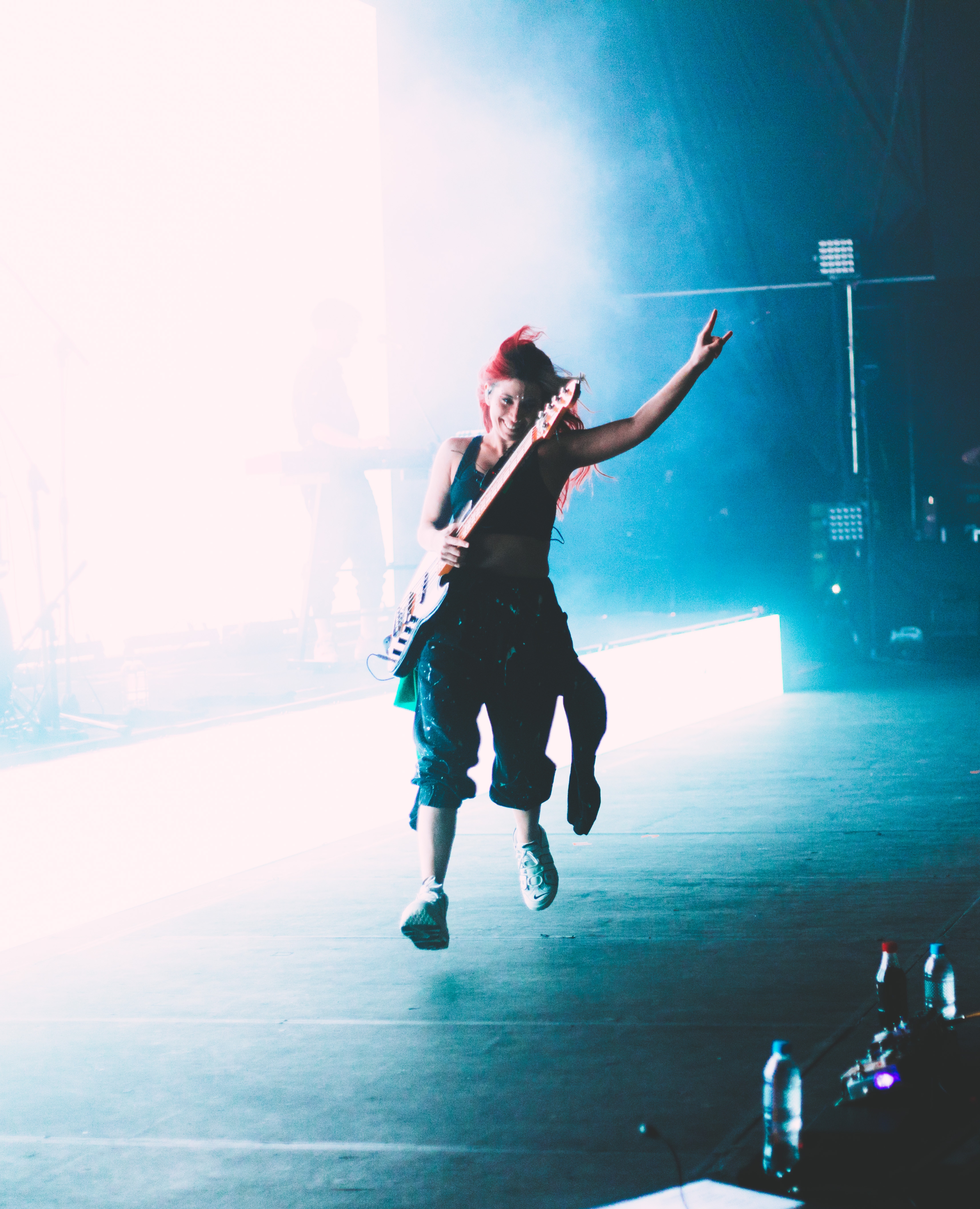 La banda de WOS en vivo se completa con Natasha Iurcovich en bajo, Facundo Yalve (Evlay Beats) en guitarra, Fran Azorai en teclados y Tomas Sainz en batería.