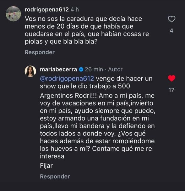 En uno de sus posteos en redes, surgieron algunas críticas por su elección de destino para sus vacaciones, pero María fue muy clara con su respuesta.